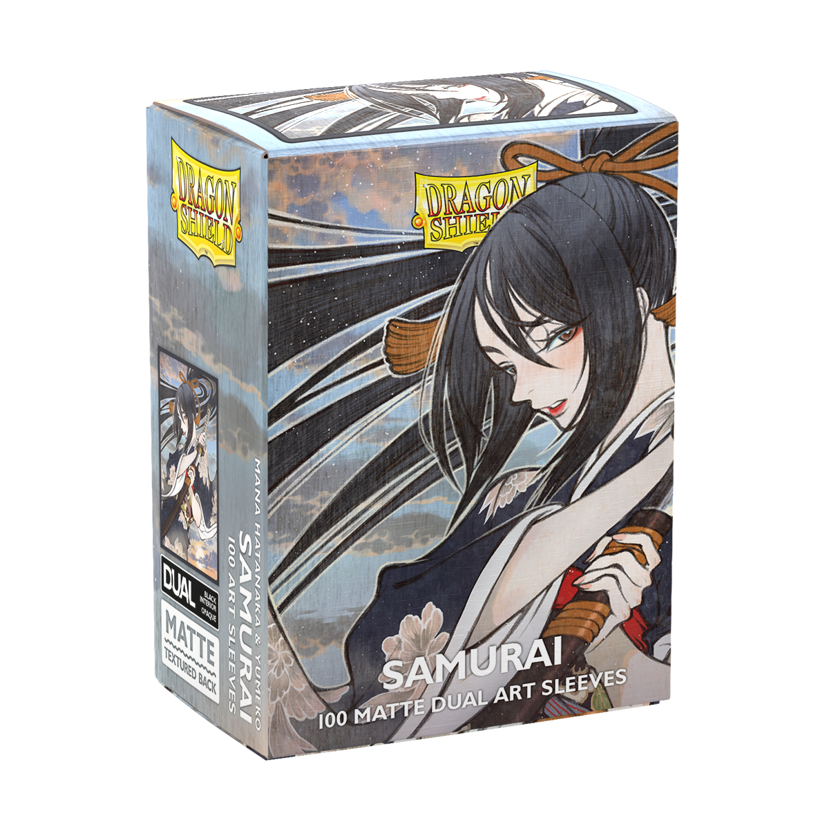 Stunning new Dragon Shield Matte Dual Art Sleeves featuring artwork by Japanese artist Yumeko. Using voice actor and content creator Mana Hatanaka as a model, Yumeko fuses a traditional Japanese style of illustration with Hatanaka’s signature stylishness to create this gorgeous Samurai artwork.