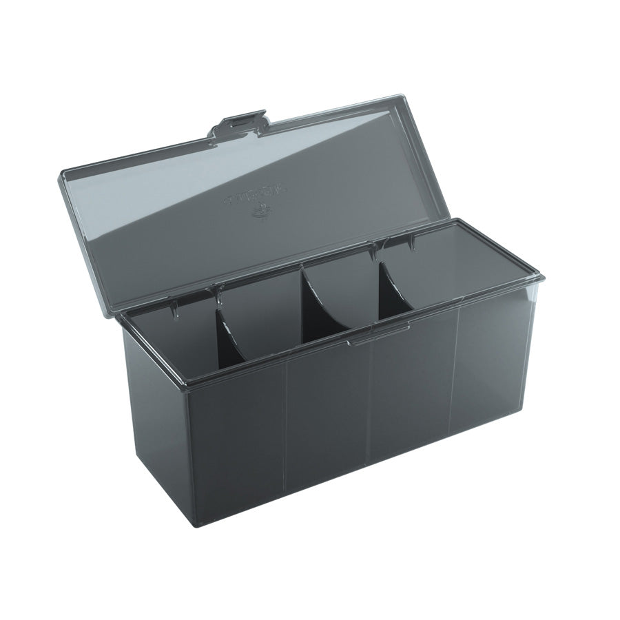 Full decks, dice, tokens or 320 double-sleeved cards: there is a lot that the Fourtress can hold and protect! This sturdy box is available in 5 different semi-transparent colors, allowing its contents to be easily identified. The integrated lock keeps it safely closed, while two inner walls can be removed to create bigger compartments. The boxes are stackable, so they are both perfect travel companions and a great storage solution at home.