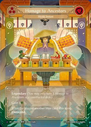 Legendary (You may only have 1 Homage to Ancestors in a constructed deck.