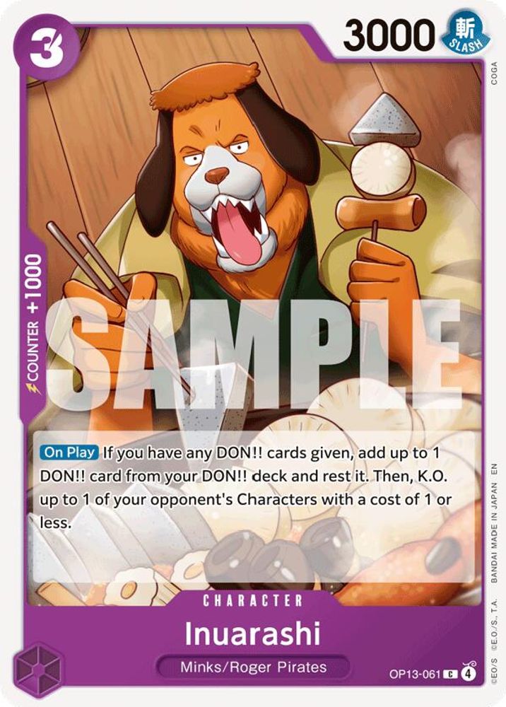 [On Play] If you have any DON!! cards given, add up to 1 DON!! card from your DON!! deck and rest it. Then, K.O. up to 1 of your opponent's Characters with a cost of 1 or less.