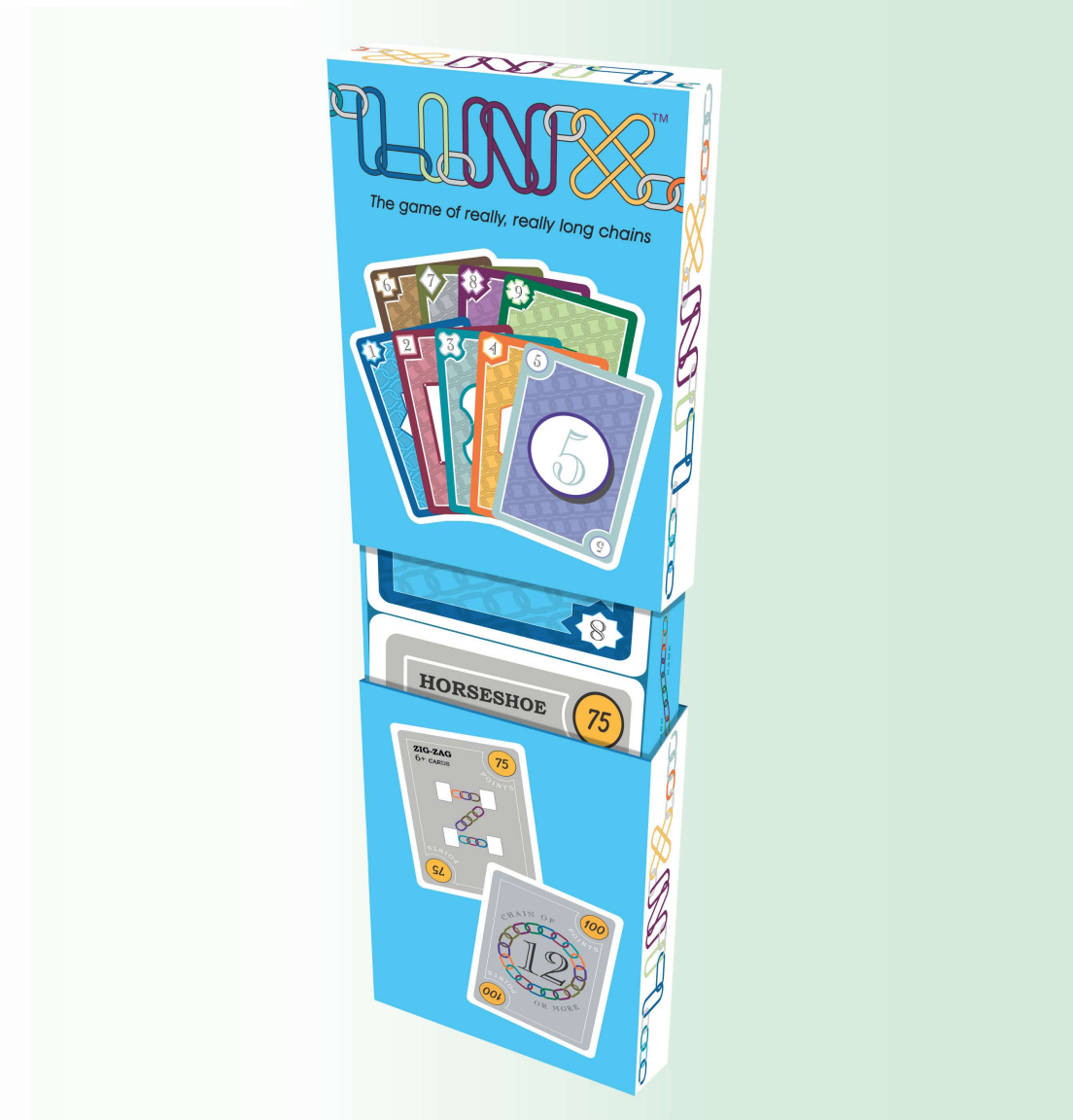 Linx is the game of really, really long chains. Deal everyone 9 cards, then deal 4 more face up on the table in a square - these 4 are the "Anchors."