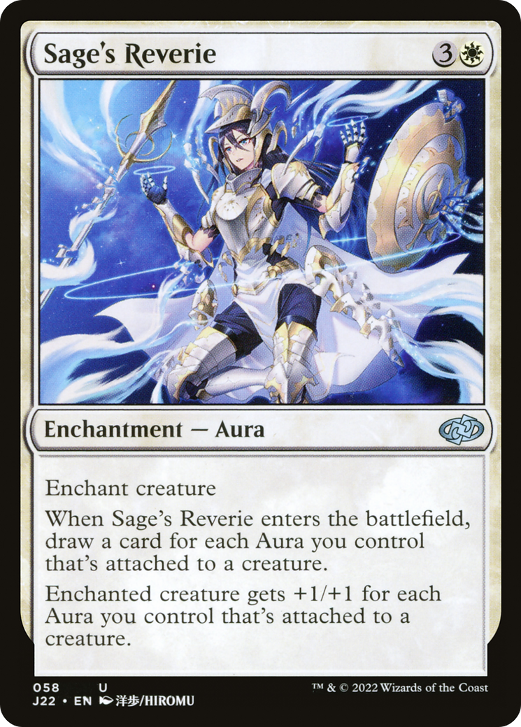When Sage's Reverie enters the battlefield, draw a card for each Aura you control that's attached to a creature.