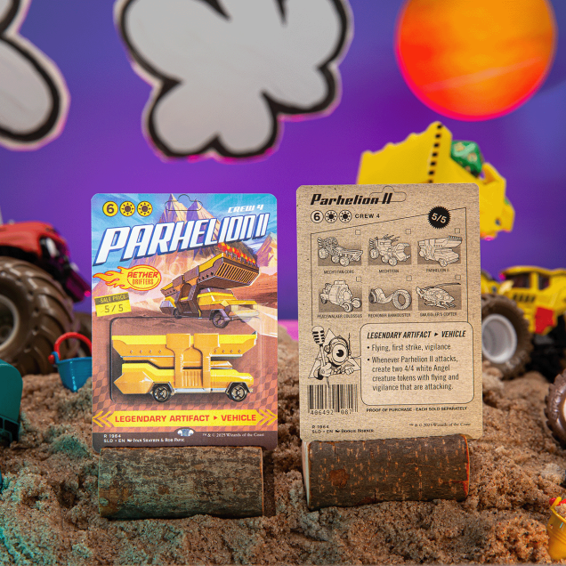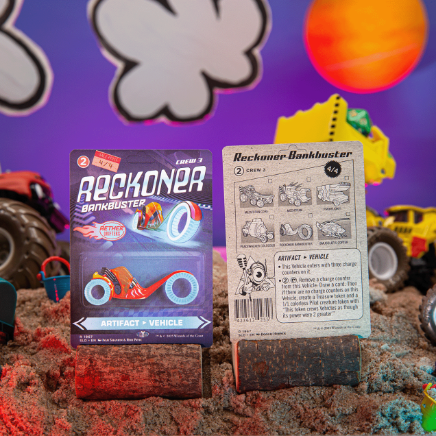 Buckle-up, speedsters, an all-new set of Aether Drifters race cards are zooming from the Ghirapur Grand Prix racetrack to your front door. These high-octane, reversible cards feature some of Magic’s most action-packed vehicles with all-new toy car art. So blast your turbo boosters and catch ’em before they speed away.